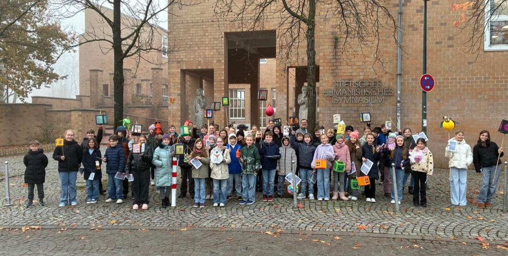 Am 10.11. erlebten wir an unserer Schule einen besonderen und stimmungsvollen Start in den Tag. Die beiden katholischen sowie der evangelische Religionskurs der Jahrgangsstufe 5 hatten sich früh am Morgen versammelt, um gemeinsam mit ihren mitgebrachten Laternen einen kleinen Umzug