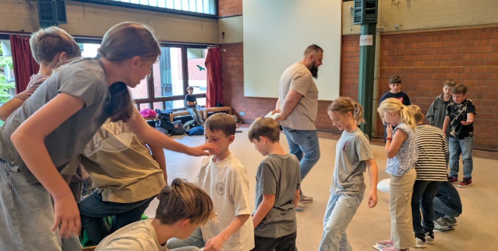 Am Dienstag, den 16.09.25, verbrachten wir im Westend unseren Teamtag. Es ging los mit dem Spiel „Die langsame Ameise“. Dabei sitzen alle bis auf ein Kind, das die Ameise spielt, auf Stühlen, die im Raum verteilt sind, und ein Stuhl bleibt frei. Die Kinder müssen verhindern, dass die Ameise sich hinsetzt, indem sie sich umsetzen. Die Ameise darf nur sehr langsam gehen. Es geht darum, als Team zusammenzuarbeiten.